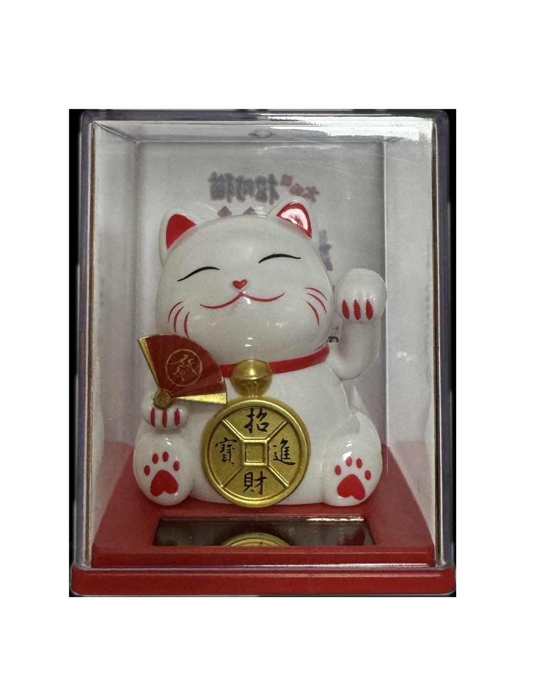 CHINESE CAT WAVING ARM: This cute beckoning cat ornament has a built in solar light receiving panel, without the need for batteries or power plugs, the light is directly converted into electricity to drive it. When waving wealth cat receives light, it will automatically swing its arms, very vivid and lovely