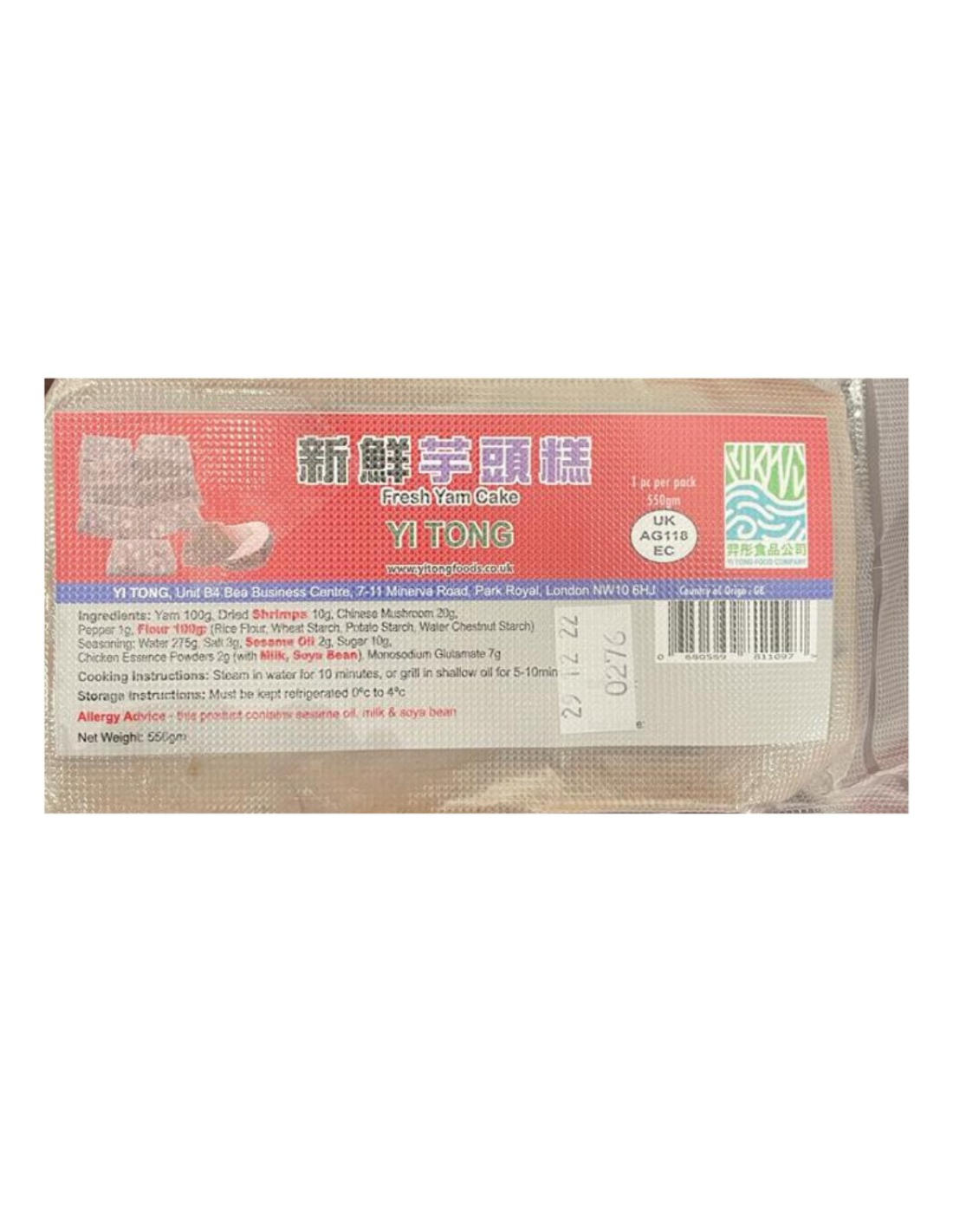 Description: Yi Tong Fresh Yam Cake 550g. A delicious fresh block of yam, perfect for yam cake lovers out there.