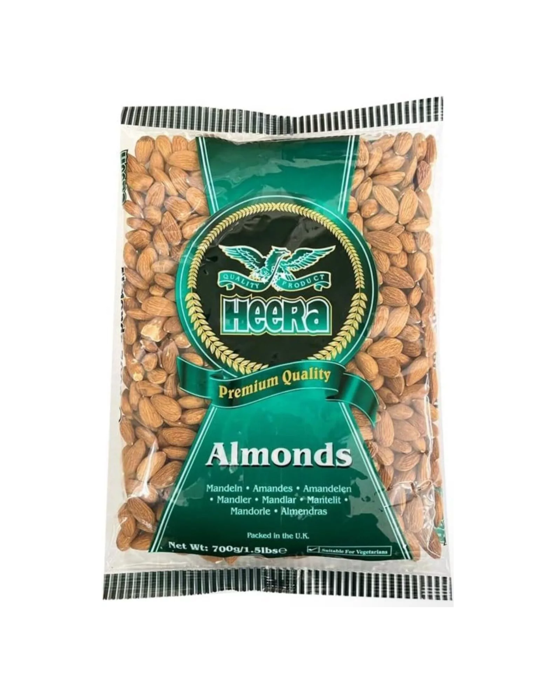 The almond is the edible kernel of the fruit of the sweet almond tree. It is a bright white fruit and wrapped in a reddish brown cover. It is consumed as dry fruit, fried and/or salted. Some well-known products, such as nougat and marzipan, are made of almonds.