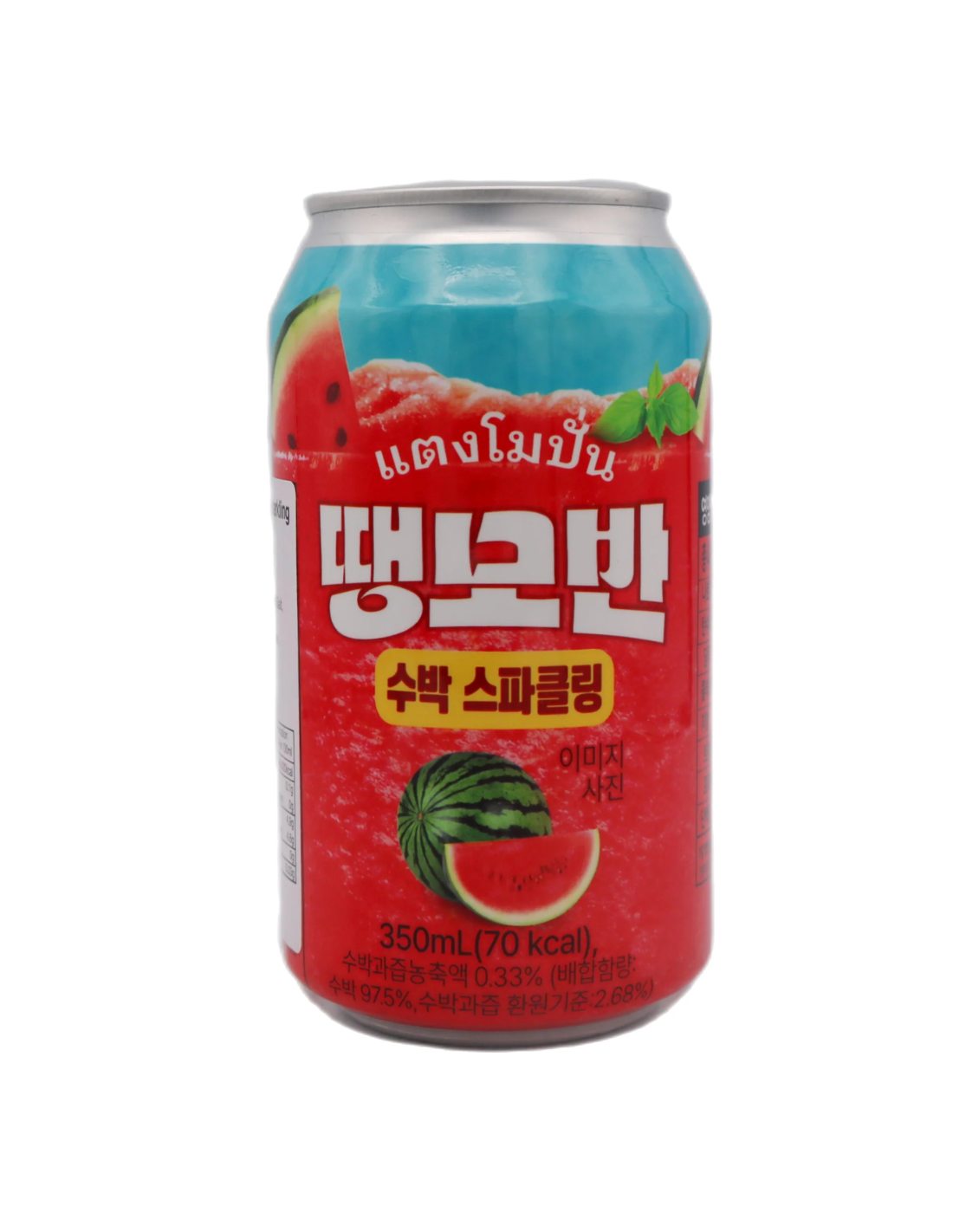 Description: Taengmo Ban Watermelon Sparking 350ml. Double Happiness Taengmo Ban Watermelon Sparking 350ml offers a refreshing blend of natural watermelon flavour with lively carbonation. This beverage provides a light, crisp taste perfect for hydration and enjoyment on warm days. Packaged in a convenient 350ml can, it is ideal for on-the-go refreshment, combining authentic fruit essence with effervescent bubbles for a sophisticated yet approachable drink experience.