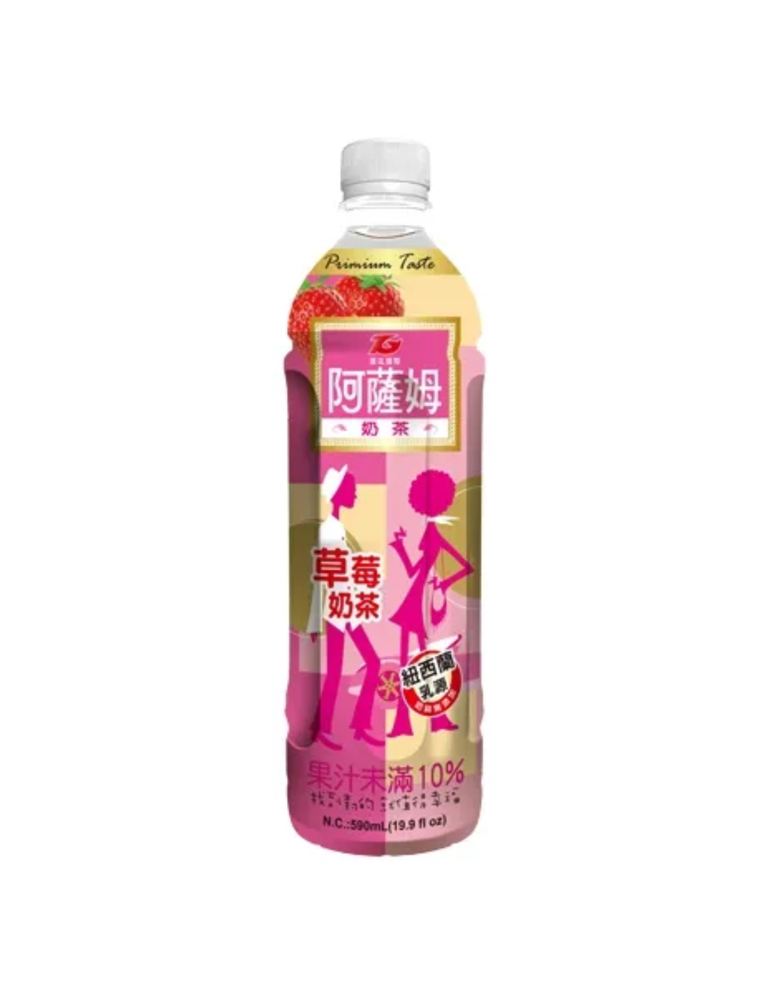 Water, sugar, whole MILK powder, skim MILK powder, Assam black tea leaves, emulsifier (E473), artificial flavour, emulsifiers (E471, E481), sodium caseinate (MILK), reconstituted strawberry juice.