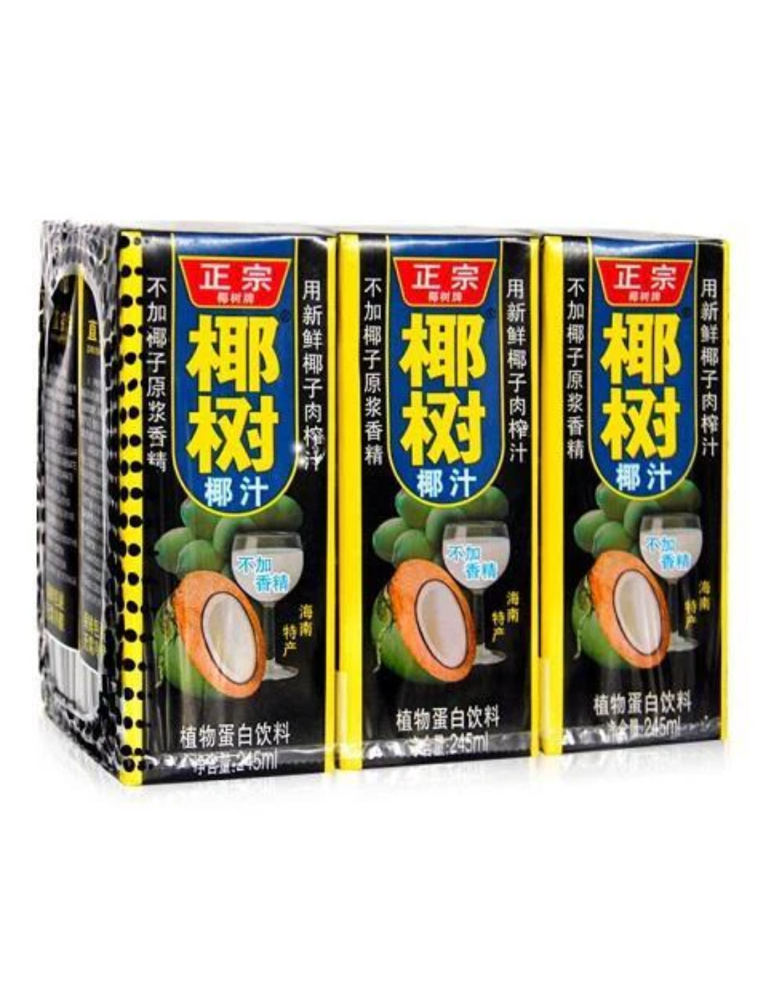 Description: Ye Shu Coconut Juice Drink (6X245ml). Coconut Palm Brand Natural Coconut Juice, which takes coconut fruits growing in Hainan as raw material, is finely processed with advanced processing technology and scientific prescription. It is a pure, natural vegetable protein drink without essence, saccharin, or preservative. The juice is uniform, milk white, refreshing and mellow, with strong natural coconut fragrance, pleasant taste, and mild sweetness.