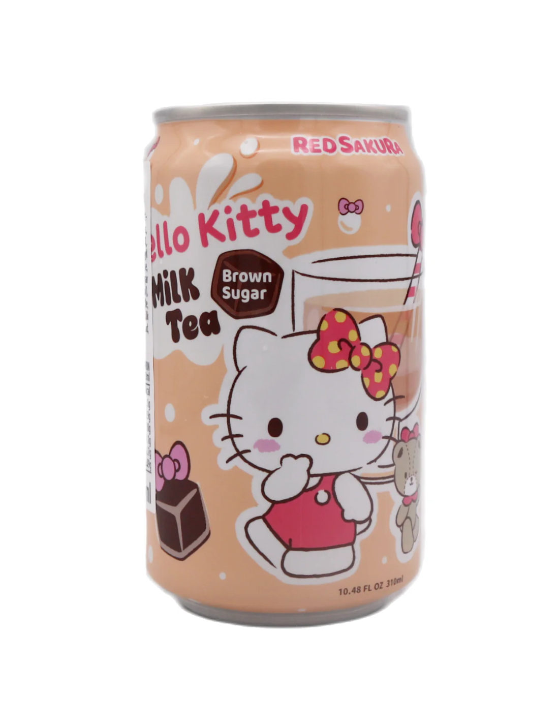 Description: Red Sakura Hello Kitty Brown Sugar Milk Tea 310ml. Red Sakura Hello Kitty Brown Sugar Milk Tea 310ml blends rich brown sugar syrup with smooth milk tea for a balanced, indulgent flavor. The 310ml bottle offers a convenient and ready-to-drink option, perfect for on-the-go enjoyment. Its distinctive Hello Kitty packaging adds a playful touch, making it ideal for fans seeking both taste and aesthetic appeal. This beverage is crafted for those who appreciate authentic milk tea sweetness with a caramelized depth from brown sugar.
