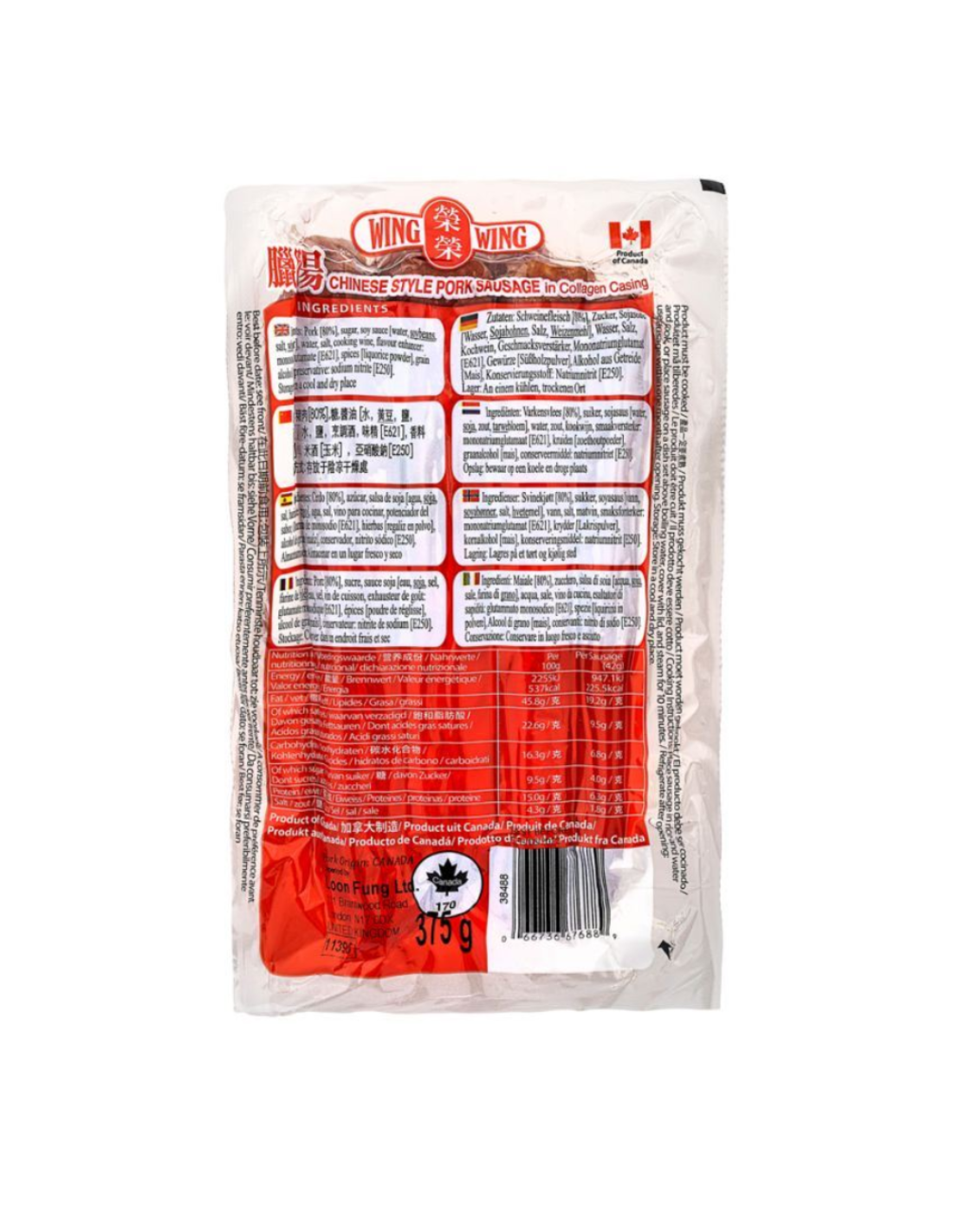Wing Wing Chinese Style Pork Sausages 375g
