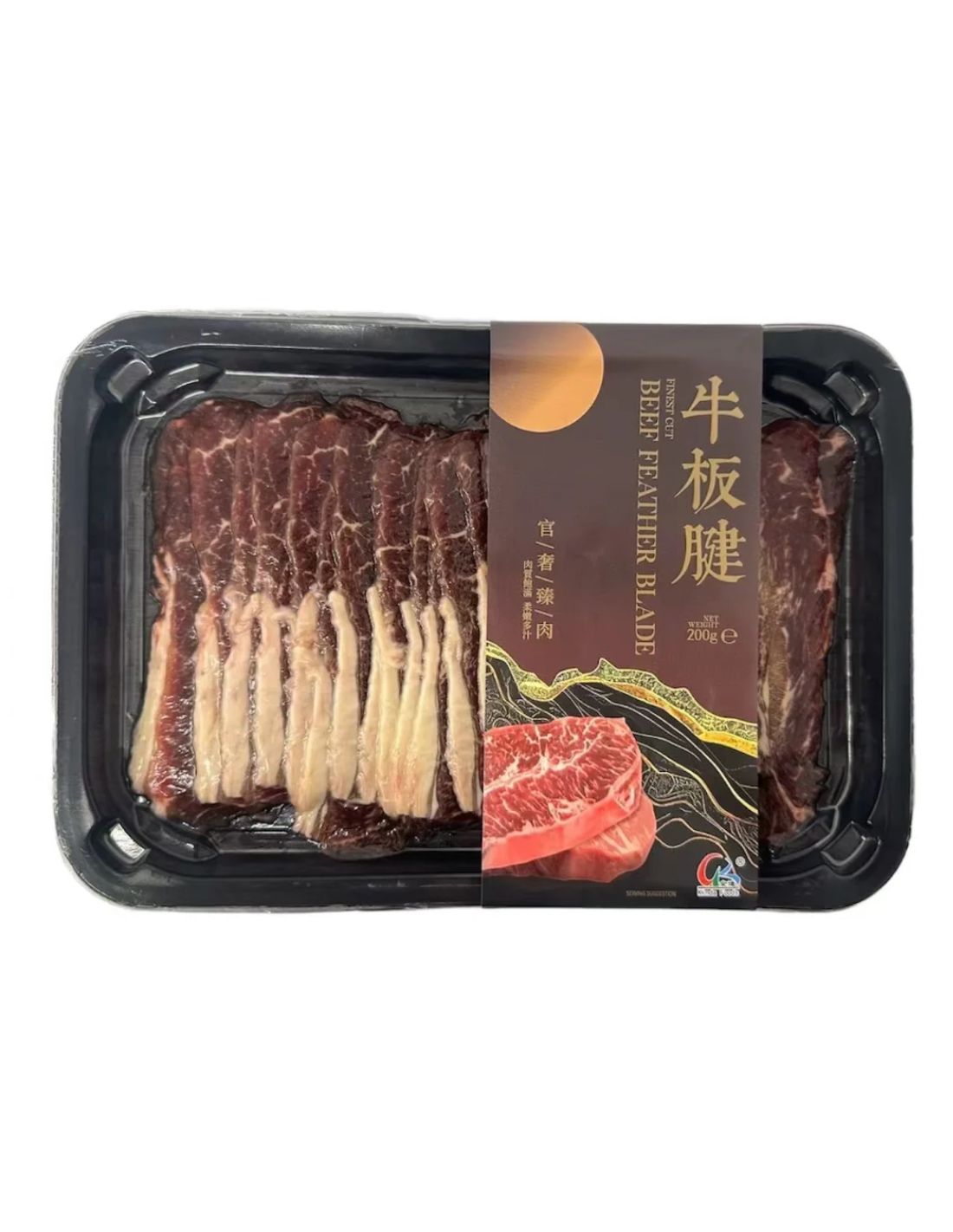 Premium sliced beef feather blade, cut against the grain for a tender texture and rich flavour. Ideal for stir-frying, grilling, or hot pot. Convenient 200g skin-packed format for portion control and freshness.