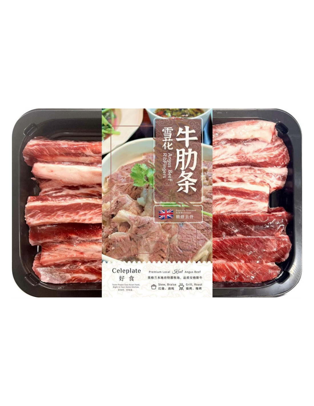 Celeplate Beef Rib Finger is a richly marbled cut taken from the rib and spine area of the cow — the same region as short ribs and rib-eye. These long, slender strips of beef are known for their intermingled fat, coarse muscle fibres, and satisfying chew. When cooked, the marbling melts into the meat, creating juicy and deeply savoury bites. Whether slow-braised until tender, air-fried for crispy edges, or grilled for a smoky char, this versatile cut is a favourite for hearty home-cooked dishes.