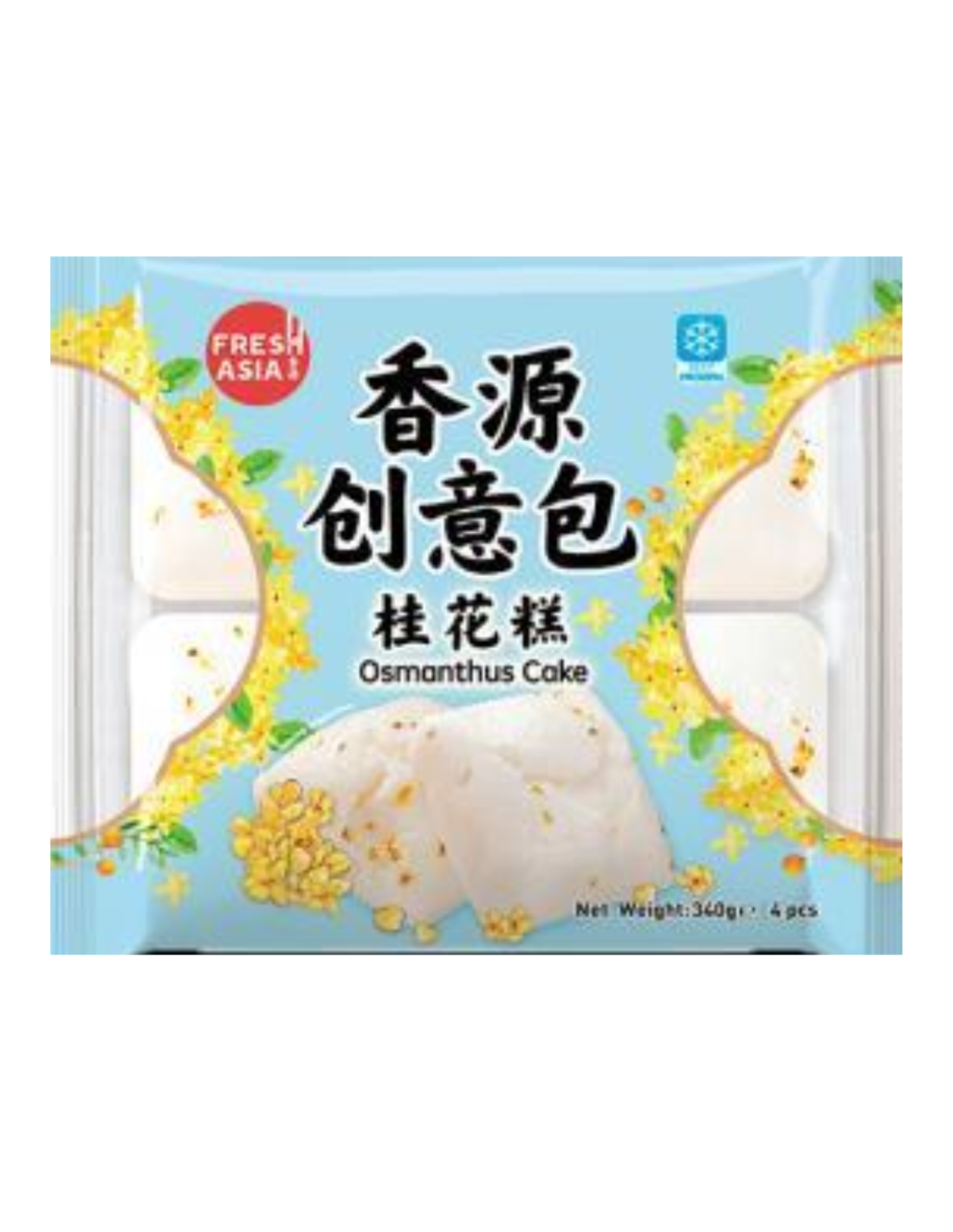 Wheat Flour (36%), Water, Sugar, Cassava Starch (17%), Baking Powder [Raising Agents: E500(ii), E170; Emulsifier: E450(i); Anti-Caking Agents: E341(iii), E341(i); Acidity Regulator: E330], Yeast, Wheat Starch, Thickener: E412, Flavouring, Osmanthus (0.03%).