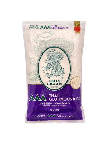 Green Dragon Thai Glutinous Rice is a type of rice known for its sticky texture and slightly sweet flavour. It is commonly used in various Asian cuisines, especially in Thai cooking, where it is a staple ingredient in dishes like sticky rice with mango and savoury rice dumplings. This particular brand, Green Dragon, offers high-quality glutinous rice sourced from Thailand, known for producing some of the best glutinous rice varieties. The rice is often soaked before cooking to ensure a soft and sticky consistency when cooked.