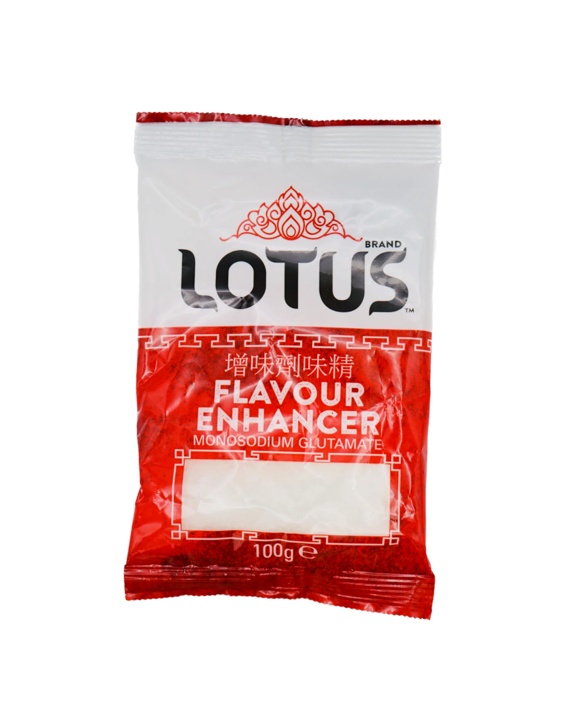 Description: Lotus Brand Flavour Enhancer/ Monosodium Glutamate 增味劑味精 100g. Enhance the flavour of your favourite dishes with Lotus Flavour Enhancer Monosodium Glutamate. This 100g packet contains a precise blend of monosodium glutamate that boosts the savoury taste of your dishes without overpowering the delicate flavours found in them. Enjoy the mouth-watering experience every time you use Lotus Flavour Enhancer!