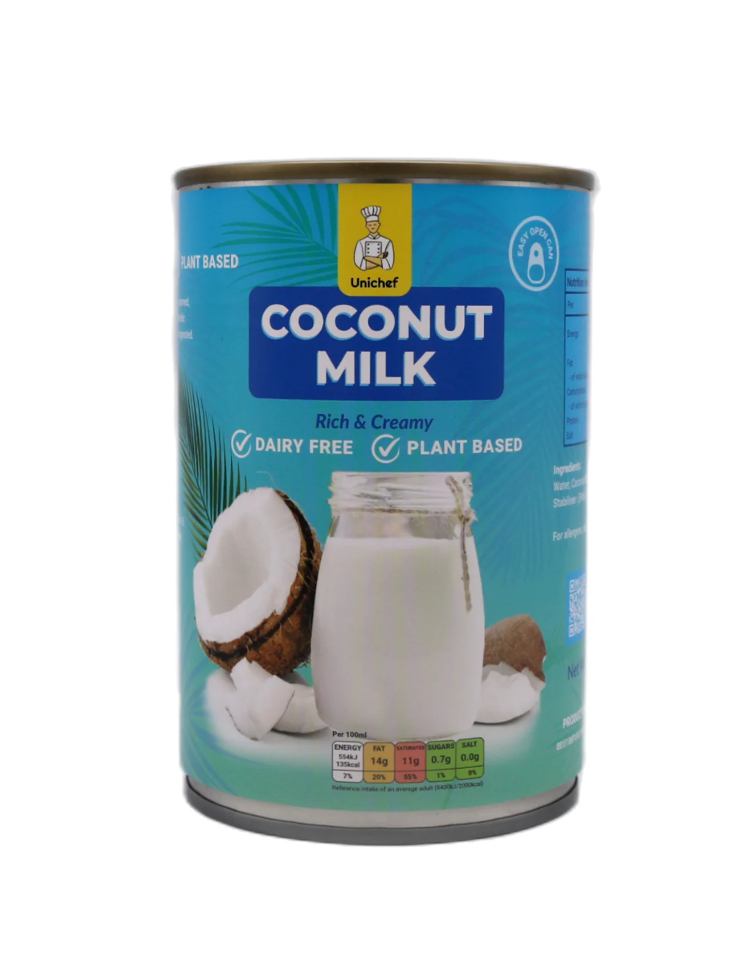 Description: Unichef Coconut Milk 400ml. Unichef Coconut Milk 400ml offers a rich and creamy texture ideal for enhancing a variety of dishes, from curries to desserts. Produced with high-quality coconuts, it delivers an authentic flavor that balances natural sweetness and subtle nuttiness. Its convenient 400ml size is perfect for both professional kitchens and home cooking, providing consistent results and ease of use in recipes requiring coconut milk.