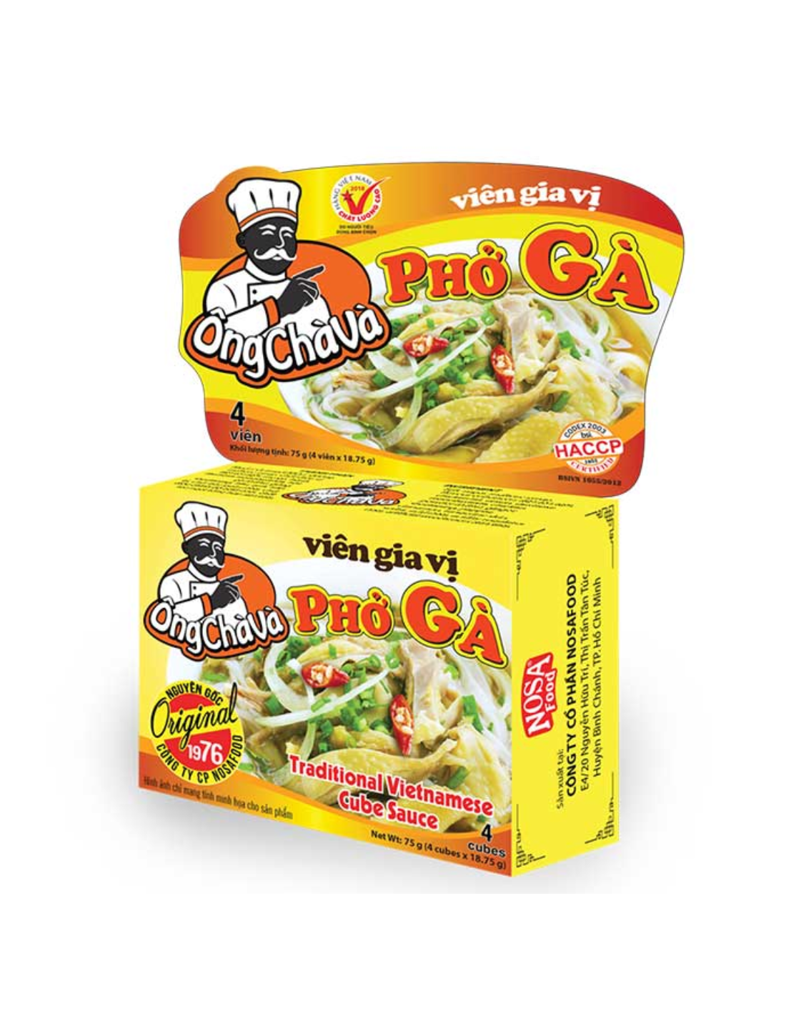 Preparation: Put the broths in 500ml of boiling water and cook for about 2-3 minutes. Then pour the cooked soup into a bowl with cooked Pho rice noodles (boil the dried noodles until soft first), cooked chicken, spring onions, coriander, Thai basil and enjoy.