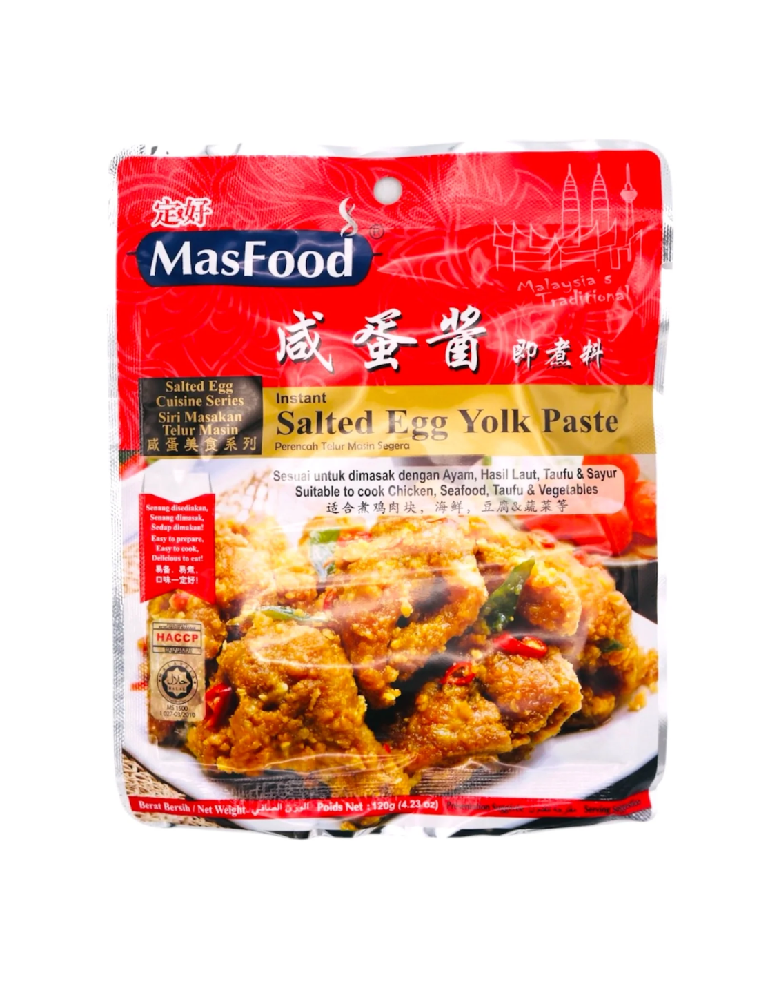 Description: MasFood Instant Salted Egg York Paste 定好鹹蛋醬即煮料 120g. Introducing MasFood Instant Salted Egg York Paste, a quick and easy solution for making delicious salted egg dishes. Made with authentic salted egg yolks, this paste adds a rich and savoury flavour to any dish. Simply add to your desired ingredients and enjoy a tasty meal in minutes.