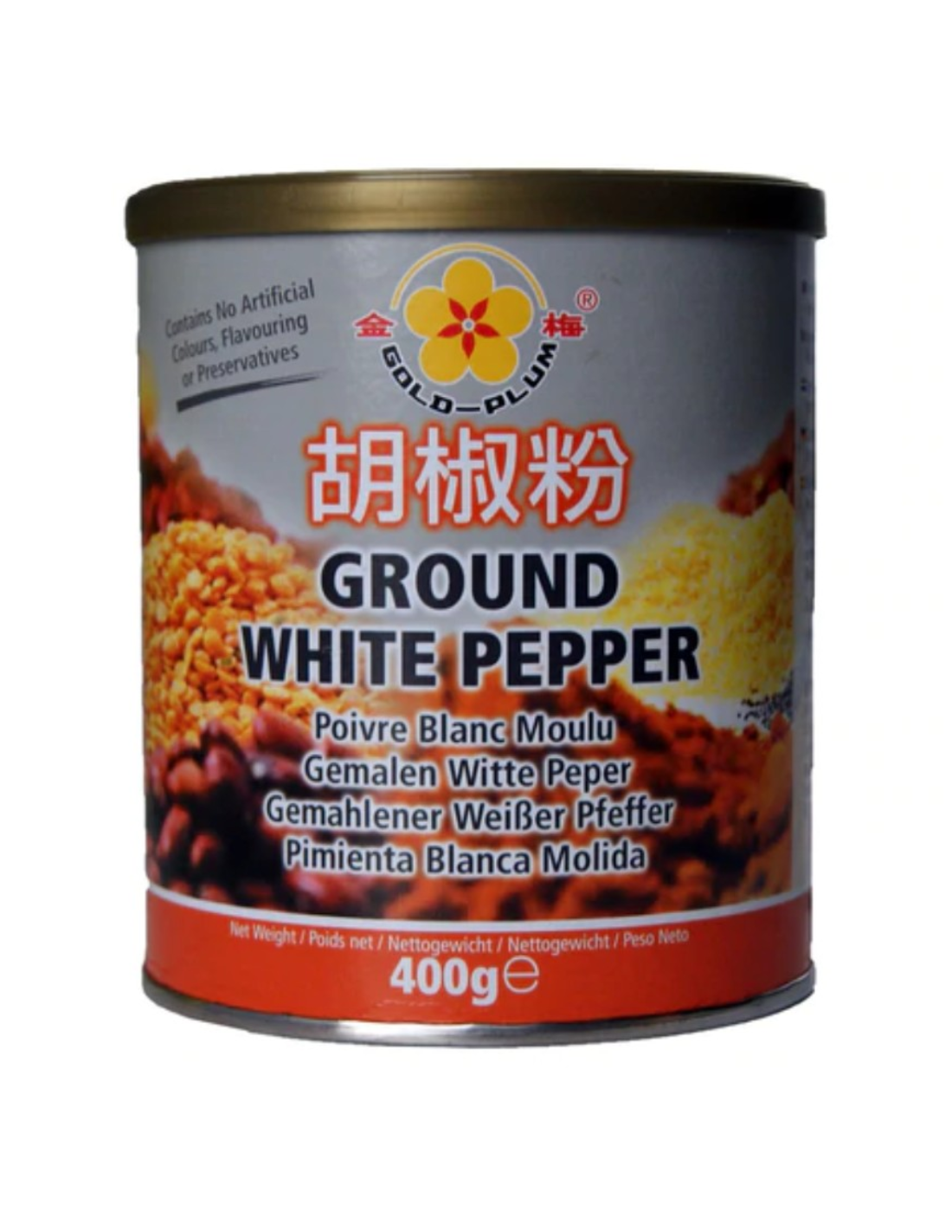Description: Gold Plum Ground White Pepper 400g. A great way to add instant flavour to any dish and a delicious alternative to black pepper.