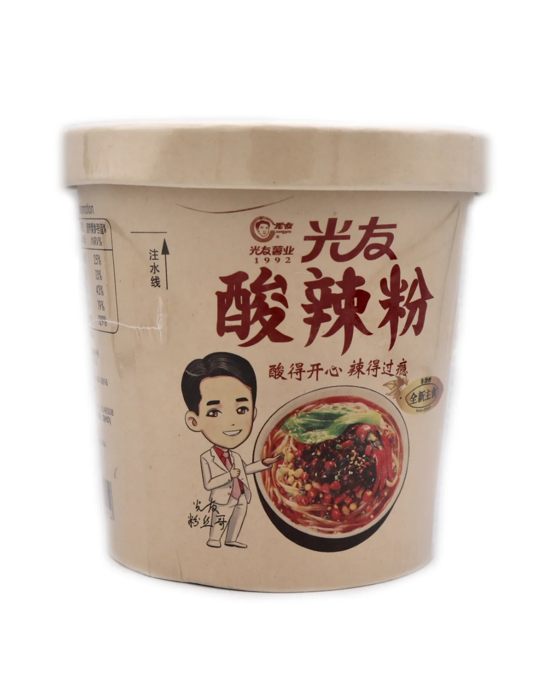 Description: Hot & Sour Flavour Vermicelli 光友酸辣粉杯装 110g. This is a Chinese instant vermicelli cup perfect for the colder winter days. It's hot, sour and delicious!