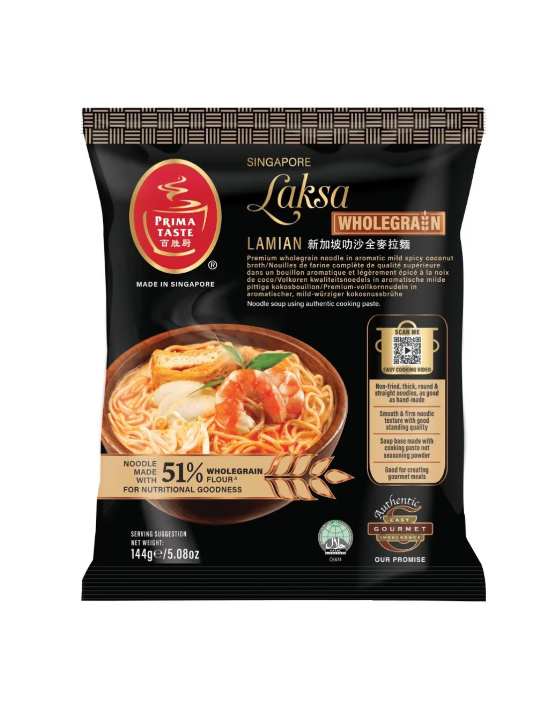 Savour the authentic taste of Singapore with Prima Taste Singapore Laksa Wholegrain La Mian. These noodles feature the rich and aromatic flavours of traditional Singaporean laksa soup with wholegrain noodles for added nutritional benefits. Prepared with premium ingredients and authentic recipes, this dish captures the essence of Singaporean cuisine.