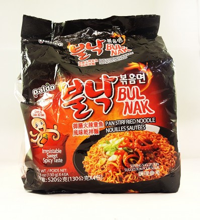 Soup Base: Fructose, Water, Red Pepper, Soy Sauce, Garlic, Sugar, Salt, Maltodextrin, Octopus Extract, Onion, Yeast Extract, Sesame Oil, Soy Oil, Paprika, Green Onion, L-Glutamic Acid (E620), Chinese Cabbage, Black Pepper, White Radish, Disodium 5'-Inosinate, Disodium 5'-Guanylate (E627), Disodium 5'-Ribonucleotide (E635), Ginger, Guar Gum.