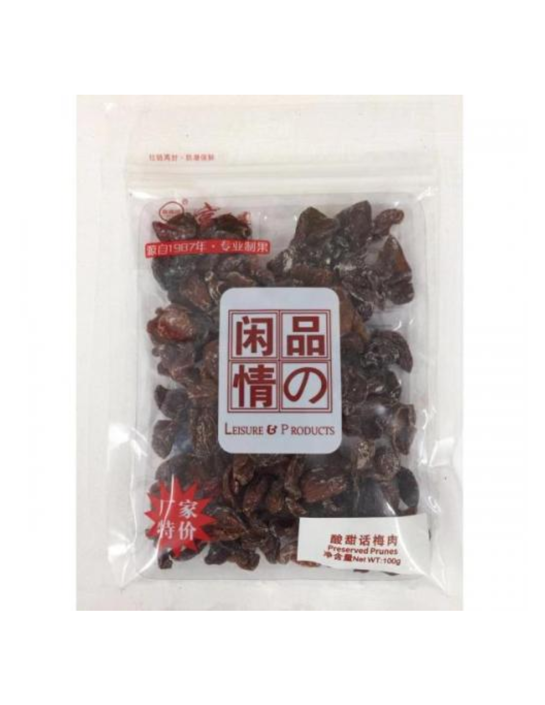 Description: FSY Preserved Prunes 100g. A packet of delicious sweet, dried prunes, perfect for prune lovers out there.