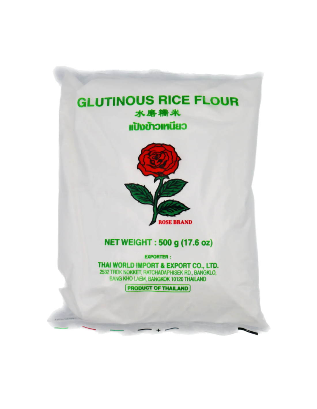 Description: Rose Brand Glutinous Rice Flour 玫瑰牌水磨糯米粉 500g. Rose Brand Glutinous Rice Flour is a flour made from glutinous rice, also known as sticky rice or sweet rice. It is a popular ingredient in many Asian desserts and snacks, as well as in some savoury dishes. The flour is made by grinding glutinous rice into a fine powder, which can be used as a thickening agent or to make dough for various dishes. It is often used in recipes for traditional Asian sweets, such as mochi, rice cakes, and glutinous rice balls, as well as in some savoury dishes, such as rice noodles and dumplings. One of the main benefits of Rose Brand Glutinous Rice Flour is its versatility in cooking and baking. It can be used as a substitute for regular wheat flour in many recipes or as a gluten-free alternative for those with gluten allergies or sensitivities. Glutinous rice flour is also rich in carbohydrates and can provide a quick source of energy, which can be helpful for athletes or those engaging in physical activity. Overall, Rose Brand Glutinous Rice Flour can be a useful ingredient in many Asian desserts and dishes, providing a gluten-free alternative for those with gluten sensitivities.