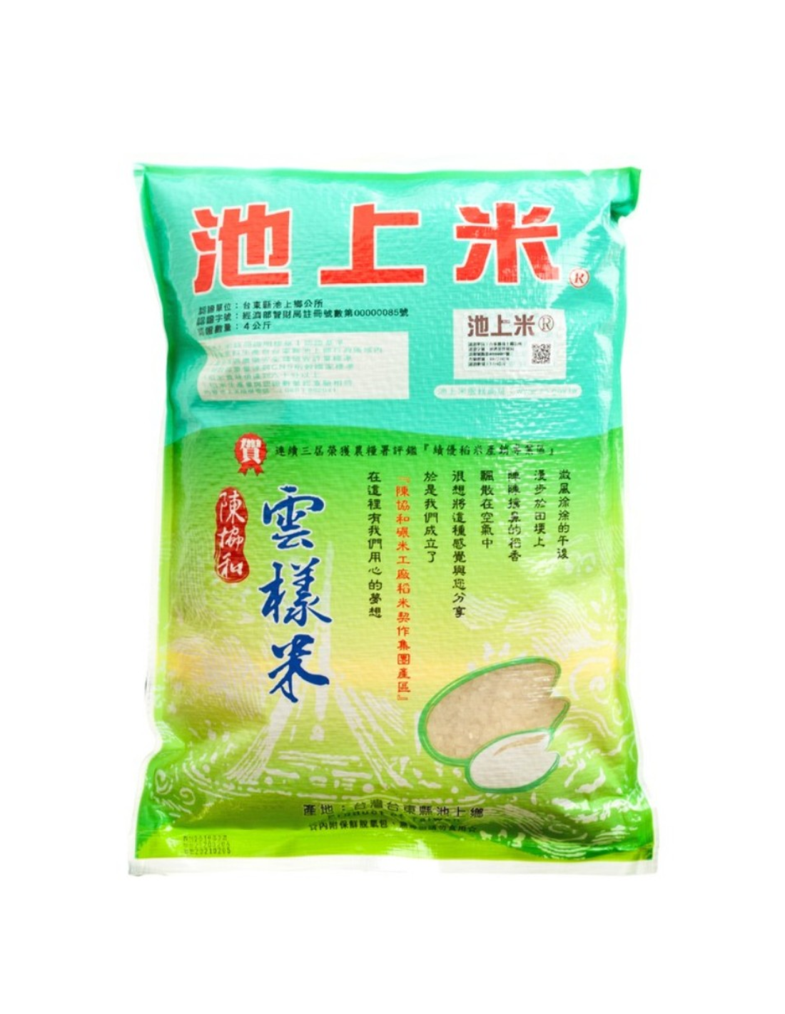 Description: Chihshang Taiwan Yuan Yang Rice 台灣池上雲樣米 4kg.A bag of delicious rice from Taiwan.