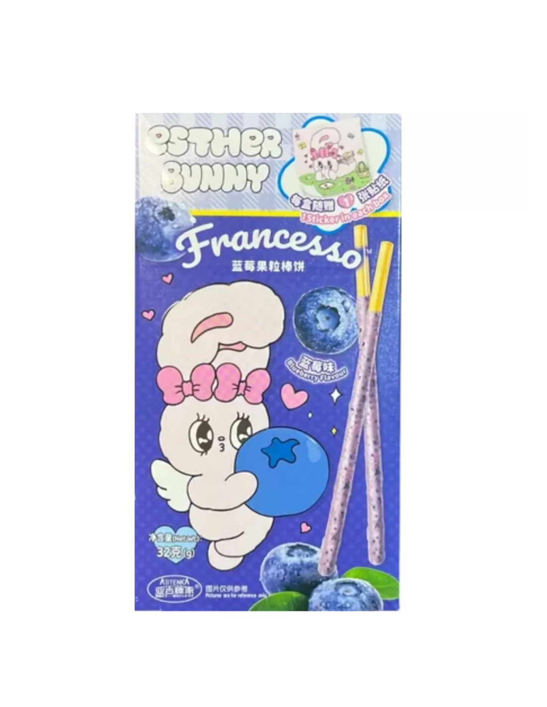 Ingredients: Wheat flour, white sugar, palm oil, milk powder , blueberry granules (2.6 %), salt, acidity regulator (E503ii, E500ii, E330), lecithin , emulsifier (E450), flavoring, coloring (E162).