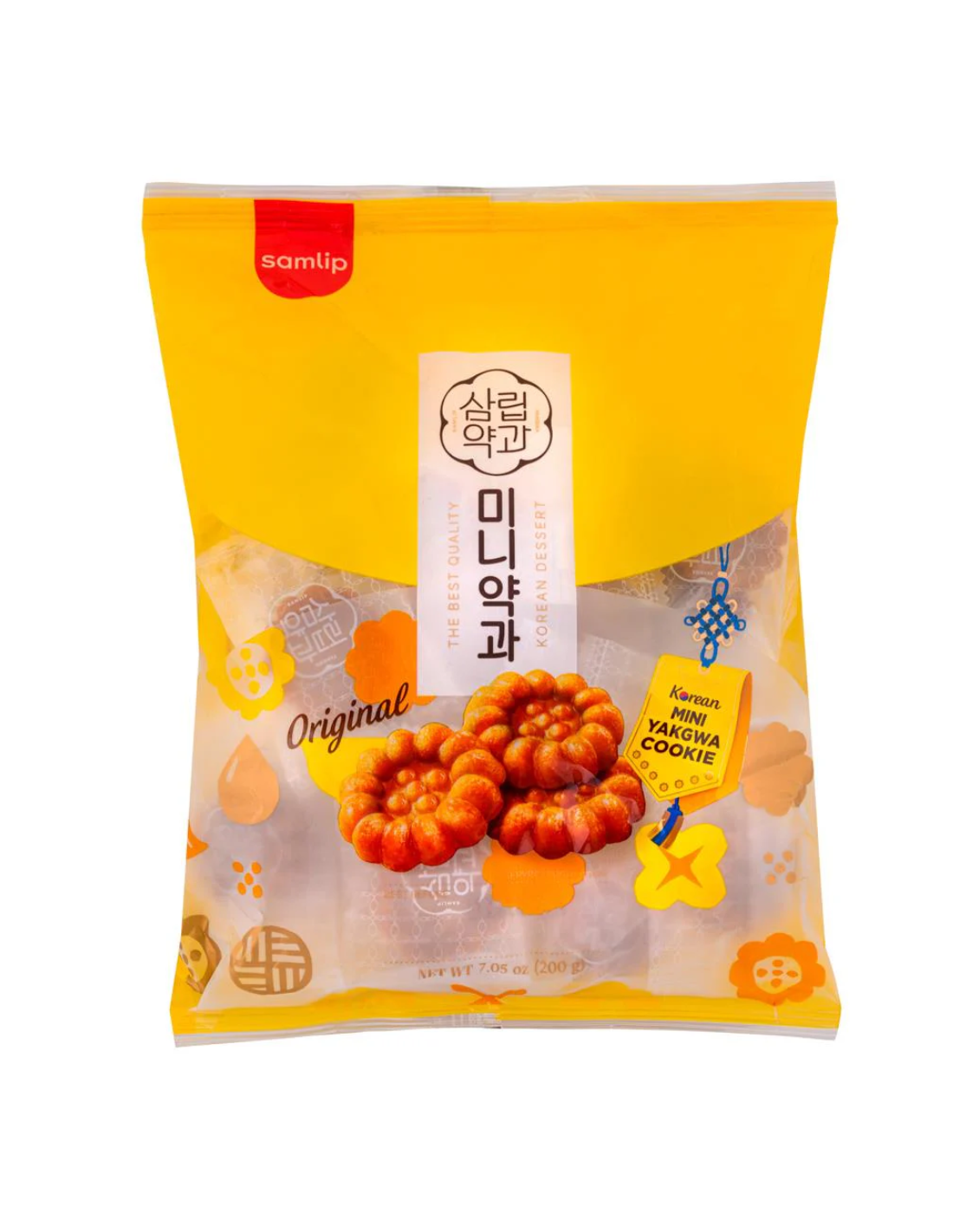 Enjoy a bite-sized taste of Korean tradition with Samlip Mini Yakgwa Cookie (Original). Made with wheat flour, sesame oil, and sweet honey, these mini fried pastries are rich, chewy, and delicately sweet. Perfect as a tea-time treat or a quick snack, they deliver the authentic flavour of classic Korean yakgwa in a convenient, shareable size. A delightful fusion of tradition and indulgence in every bite.