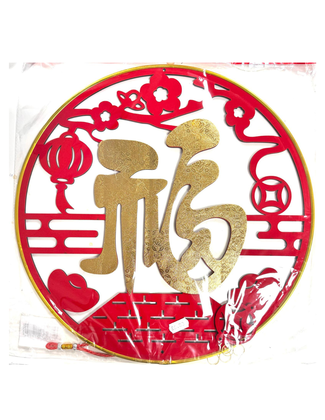 絨布斗方立體壁掛-福 38x38cm