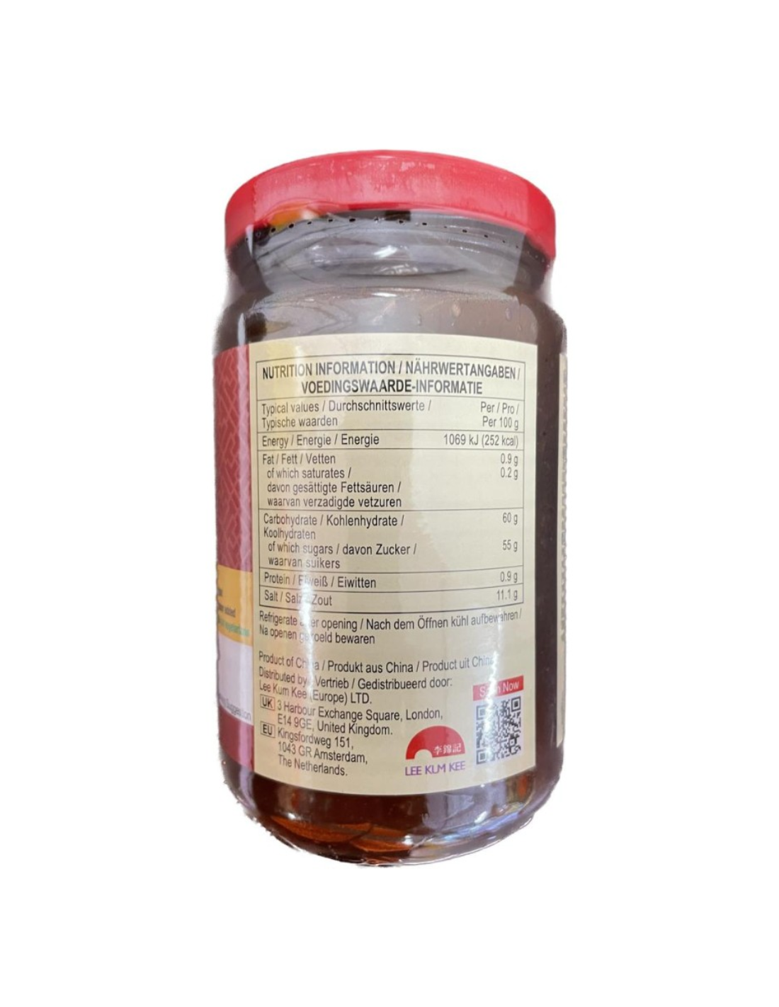 Ingredients: Sugar, Water, Salt, Honey, Fermented Soybean Paste (Water, Salt, SoybeansWheat Flour), Soy Sauce (Water, Salt, SoybeansWheat Flour) Modified Corn Starch, Dehydrated Garlic, Spices, Acid E260.