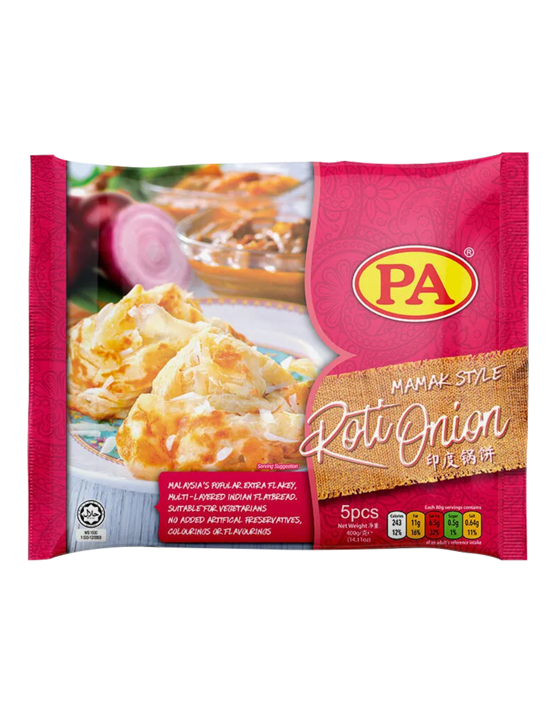 小麦粉(麸质)(53.89%)、水 (22.12%)、洋葱 (19.31%)、人造黄油(植物油脂、棕榈油分馏物、棕榈油及全氢化棕榈油、水、盐、乳化剂(E471 和 E475、卵磷脂 E322i(大豆))、调味料、抗氧化剂 (E307b)、着色剂(E100i、E100ii、E160a(i)、E160b(i))、棕榈油 (1.17%)、盐 (0.7%)。