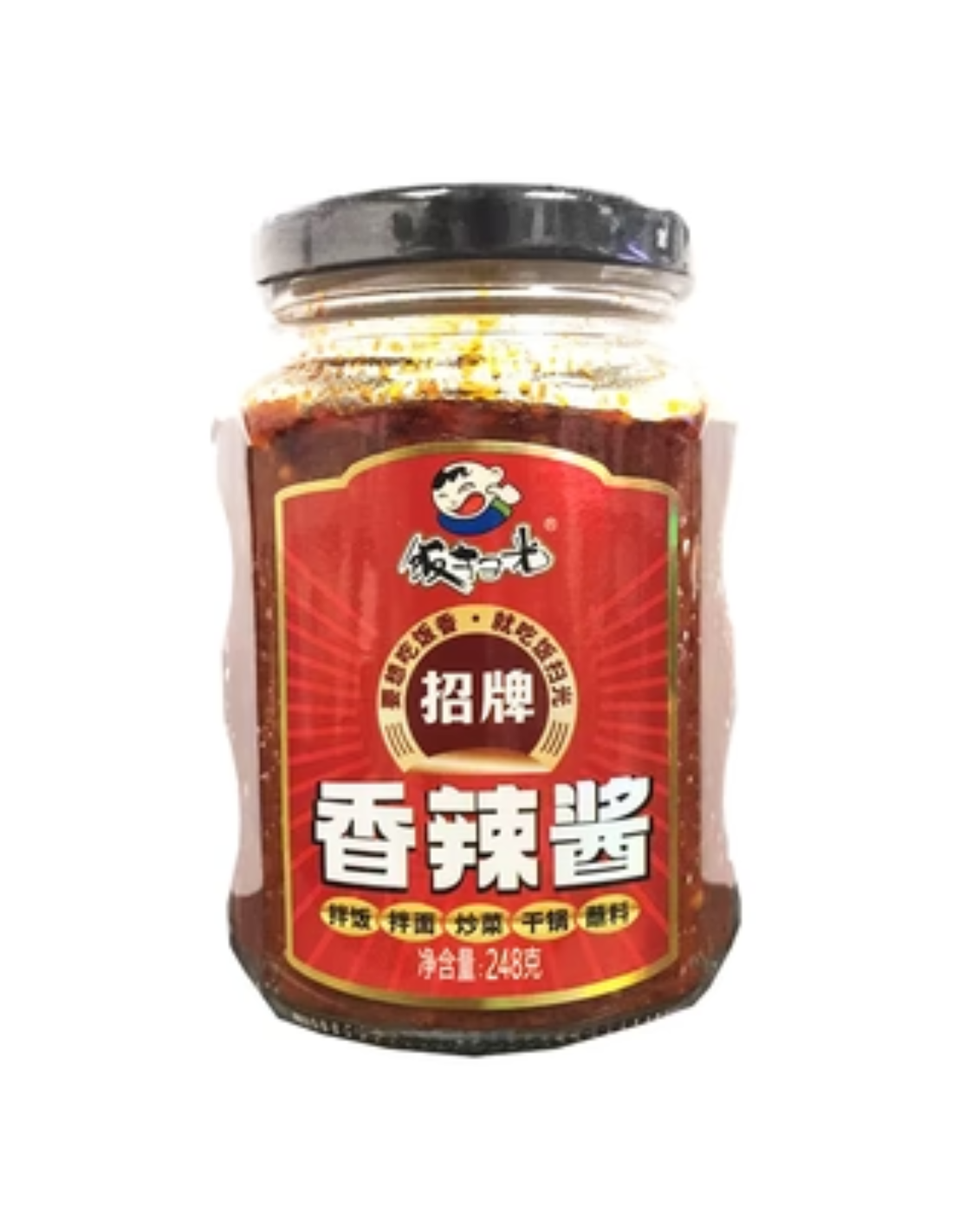 辣椒(33.6%)、水、大豆油、菜籽油、盐、酿造酱油(水、大豆、小麦(麸质)、盐)、增味剂(E621、E635)、酿造酱油(水、蚕豆、小麦(麸质)、盐)、芝麻、香辛料(花椒、白芷、八角、桂皮、小茴香、当归、小豆蔻、砂仁、丁香、甘草)、增稠剂(E1414)、酸度调节剂(E330)、防腐剂(E202)。 含有甘草。