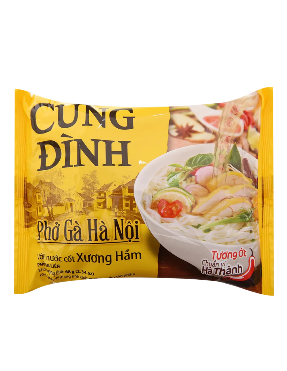 宫廷鸡肉味方便米粉和素鸡肉味方便米粉,合二为一,方便快捷,轻松享用。只需按照标签上的烹饪说明操作,即可体验正宗的越南鸡肉米粉。