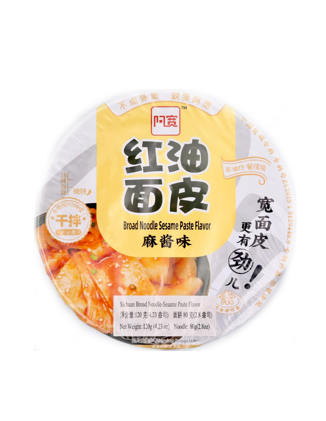 产品描述:AK四川宽面 - 芝麻酱味 115克。一碗美味的中国芝麻酱辣椒油拌面,是快速享用香辣美食的理想之选。